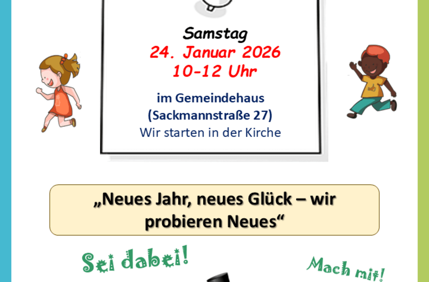 Liebe Kinder wir laden euch ein! Zu unserer Kinderkirche am Samstag, den 24. Samstag 2026 Sie findet im Gemeindehaus (Sackmannstr. 27) statt. Wir beginnen in der Kirche um 10 Uhr und werden ...