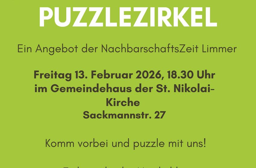 Es wird gepuzzelt! Gemeinsam oder Gegeneinander. Alles ist möglich. Am Freitag 13. Februar 2026 findet ab 18.30 Uhr im Gemeindesaal der St. Nikolai Kirche (Sackmannstr. 27) statt. Kommt gerne ...